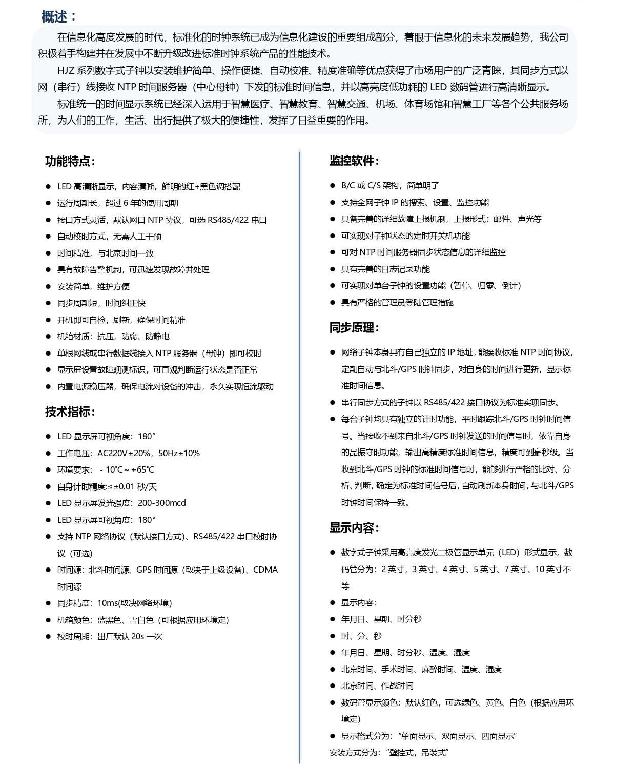 標準化的時鐘系統(tǒng)已成為信息化建設(shè)的重要組成部分,著眼于信息化的未來發(fā)展趨勢,我公司積極著手構(gòu)建并在發(fā)展中不斷升級改進標準時鐘系統(tǒng)產(chǎn)品的性能技術(shù)。HJZ系列數(shù)字式子鐘以安裝維護簡單、...