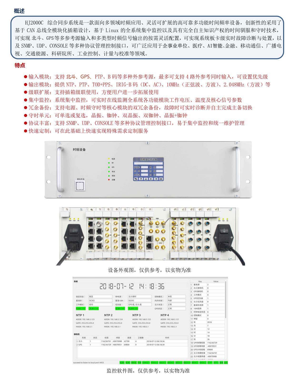 HJ2000C 綜合同步系統(tǒng)是一款面向多領(lǐng)域時頻應(yīng)用、靈活可擴(kuò)展的高可靠多功能時間頻率設(shè)備,創(chuàng)新性的采用了基于CAN總線全模塊化插箱設(shè)計(jì),基于Linux的全系統(tǒng)集中監(jiān)控以及具有完全自主知識產(chǎn)權(quán)的時...